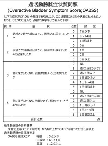 過活動膀胱の診断基準 ・過活動膀胱(OAB)は尿意切迫感、頻尿、夜間頻尿および切迫性尿失禁を伴いうる状態である。 ・尿が膀胱に貯留して膀胱壁が伸展すると、それが尿意となって大脳に伝わるが、その大脳への神経伝達が機能的に亢進すると尿意切迫感の出現と…